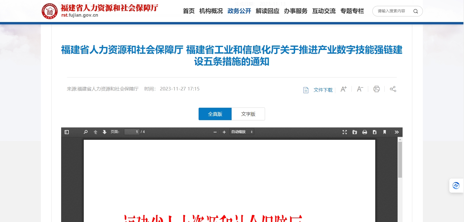 福建省人力資源和社會(huì)保障廳 福建省工業(yè)和信息化廳發(fā)布關(guān)于推進(jìn)產(chǎn)業(yè)數(shù)字技能強(qiáng)鏈建設(shè)五條措施的通知