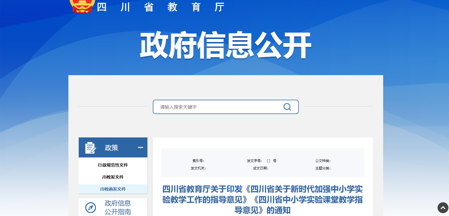 四川省教育廳關(guān)于印發(fā) 《四川省關(guān)于新時(shí)代加強(qiáng)中小學(xué)實(shí)驗(yàn)教學(xué)工作 的指導(dǎo)意見(jiàn)》《四川省中小學(xué)實(shí)驗(yàn)課堂教學(xué) 指導(dǎo)意見(jiàn)》的通知