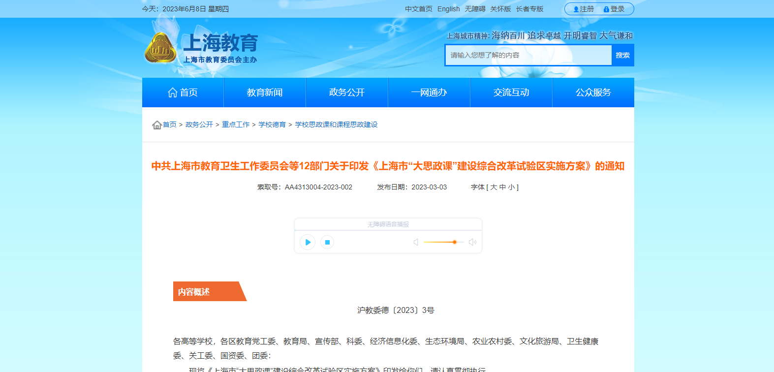 中共上海市教育衛(wèi)生工作委員會等12部門關(guān)于印發(fā)《上海市“大思政課”建設(shè)綜合改革試驗區(qū)實施方案》的通知