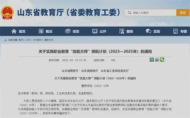 山東啟動職業(yè)教育“技能大師”領(lǐng)航計(jì)劃!