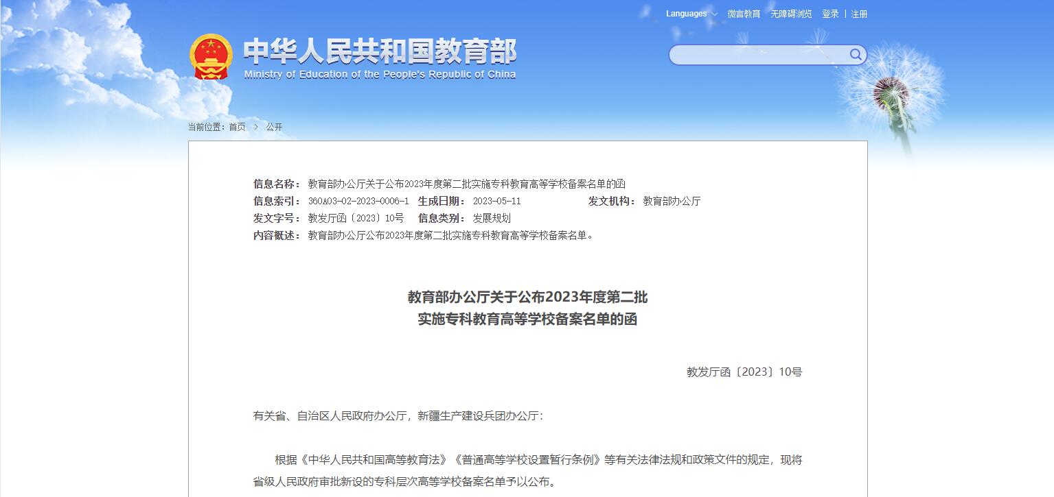 新增22所職校!教育部公布第二批高等專科學(xué)校備案名單