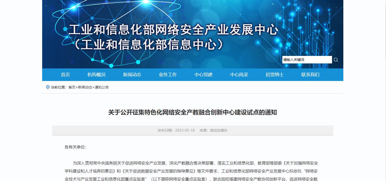 工信部發(fā)布關(guān)于公開征集特色化網(wǎng)絡(luò)安全產(chǎn)教融合創(chuàng)新中心建設(shè)試點(diǎn)的通知
