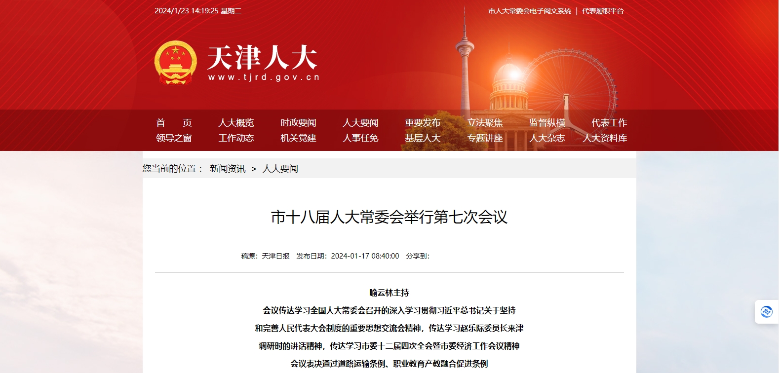 日前,天津市十八屆人大常委會第七次會議表決通過了《天津市職業(yè)教育產(chǎn)教融合促進(jìn)條例》(下稱《條例》),這是全國首部有關(guān)職業(yè)教育產(chǎn)教融合的地方性法規(guī),自2024年3月1日起施行?!稐l例》的制定和施行,對于......
