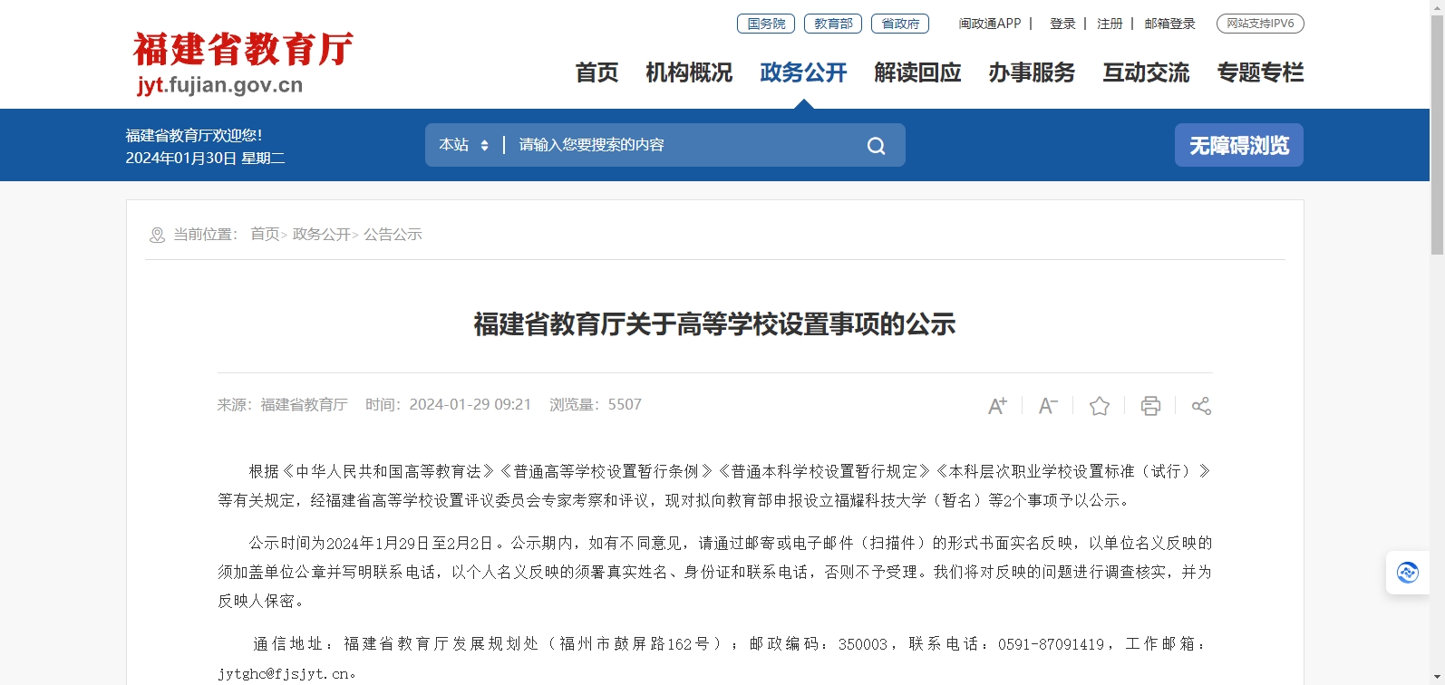 2024年1月29日,福建省教育廳官方網(wǎng)站發(fā)布《福建省教育廳關(guān)于高等學(xué)校設(shè)置事項的公示》。公示中稱,根據(jù)《中華人民共和國高等教育法》《普通高等學(xué)校設(shè)置暫行條例》《普通本科學(xué)校設(shè)置暫行規(guī)定》《本科層次職......