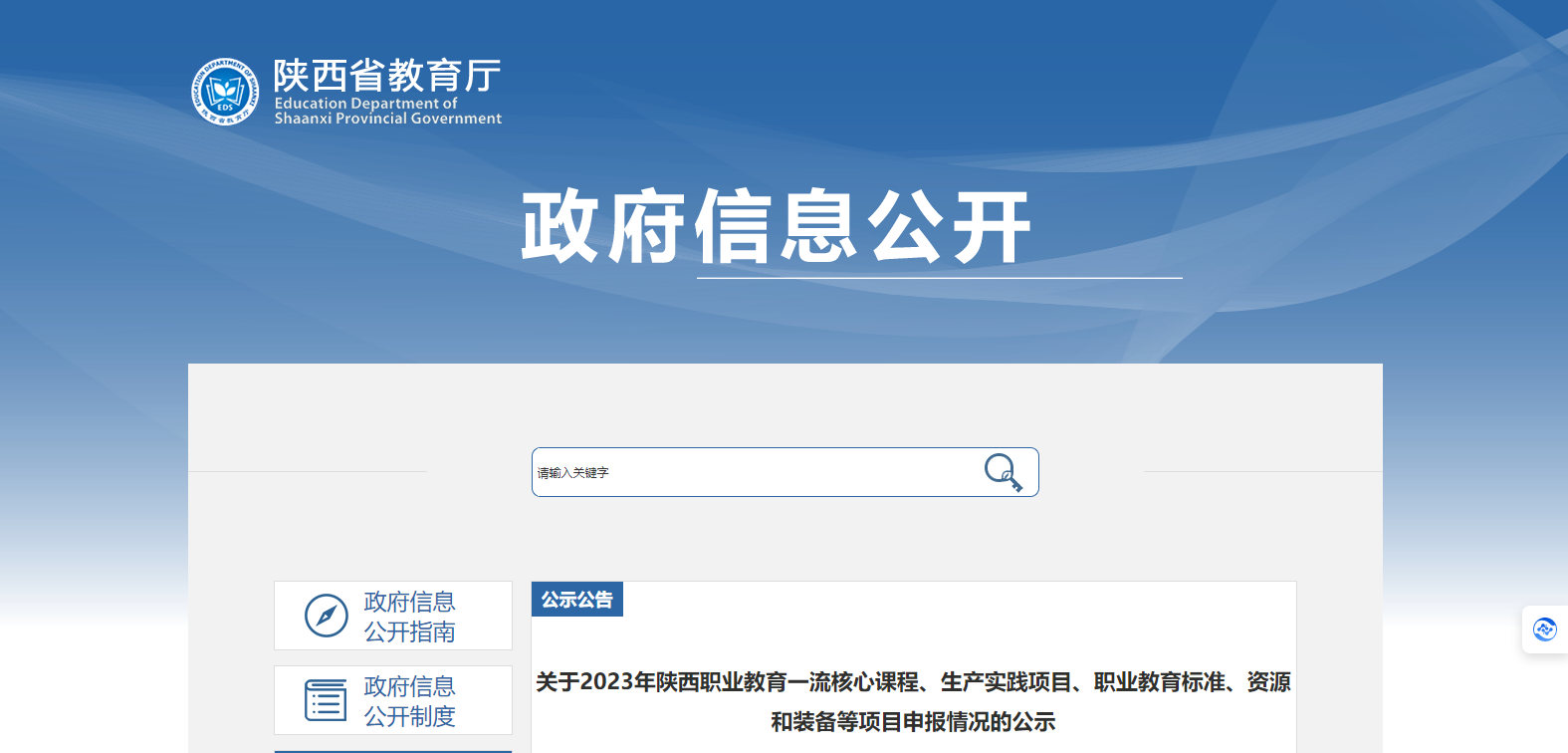 陜西省教育廳公示陜西職業(yè)教育一流核心課程、生產(chǎn)實踐項目、職業(yè)教育標(biāo)準(zhǔn)、資源和裝備等項目